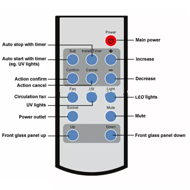 | Standard Accessory | LED lamp*2, UV lamp*2, Remote control, Waterproof sockets*2 |