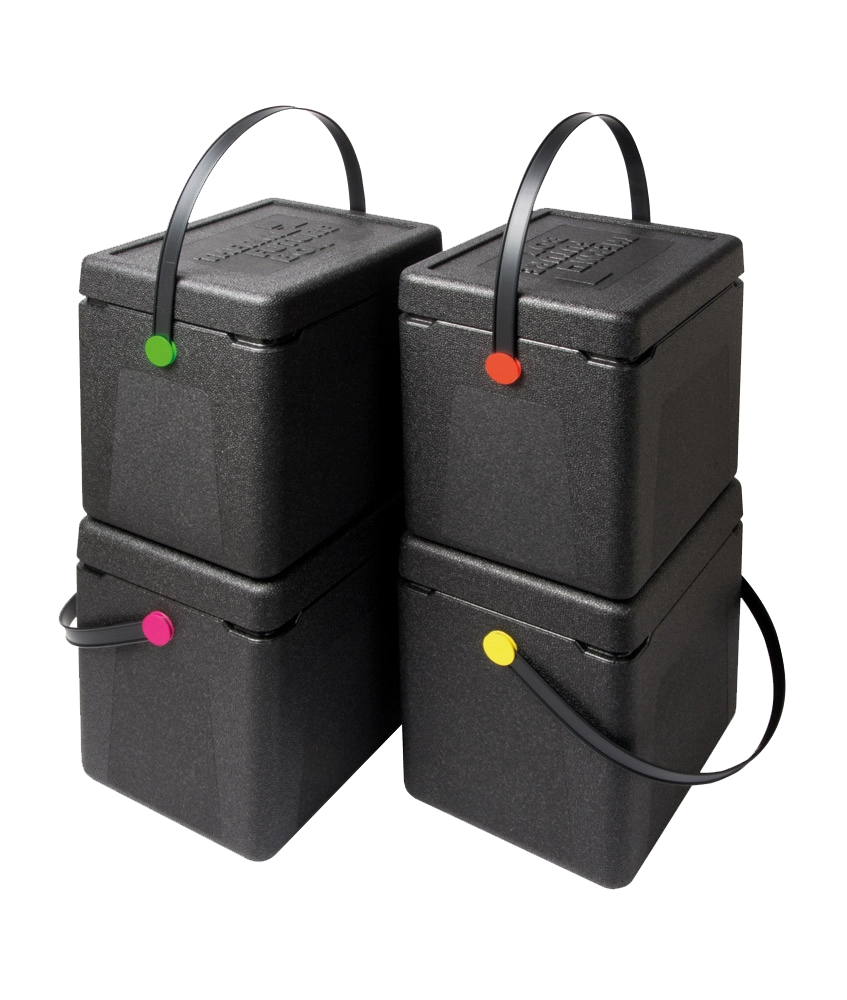 - วัสดุกล่องและฝาผลิตจาก Expanded Polypropylene (EPP) ซึ่งเป็นโฟมที่มีความแข็งแรงทนทาน และมีความยืดหยุ่นสูง